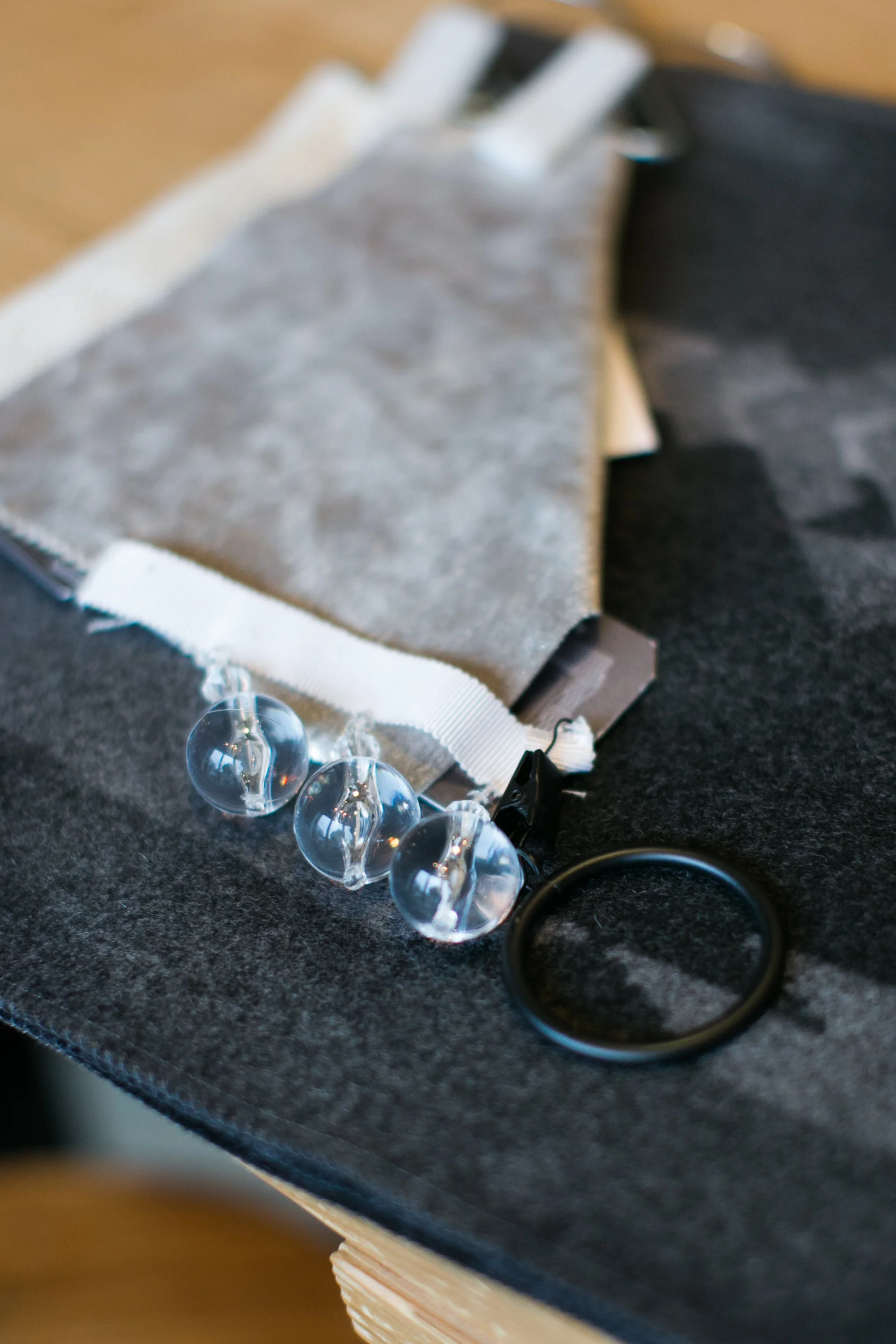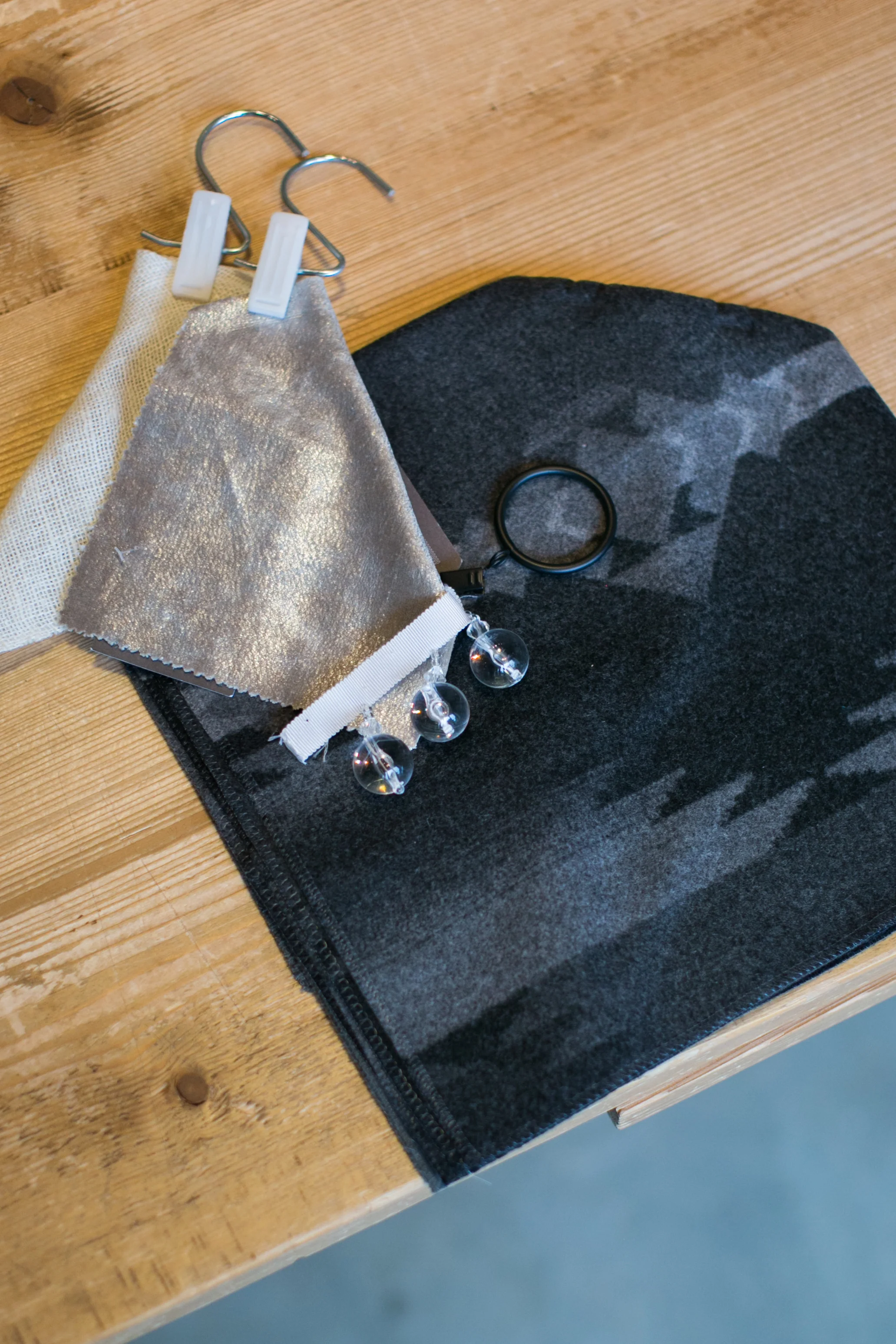 Southwestern textiles are smokin' hot! So naturally, it was the first thing I grabbed when I was imagining what would set the tone for my living room. In my opinion, living rooms are meant for snuggling, and what better way to find that comfort than with this grey southwestern fleece! And since I like to add little surprises when pairing pieces together, I thought these crystal trim pieces were a little unexpected, but at the same time, a beautiful contrast to the bold grey and hard lines of the geometric pattern in the fleece. Topped off with a warm, shimmery fabric and a beige burlap to add some warmth, this room has me ready to sit down and kick-up my feet.