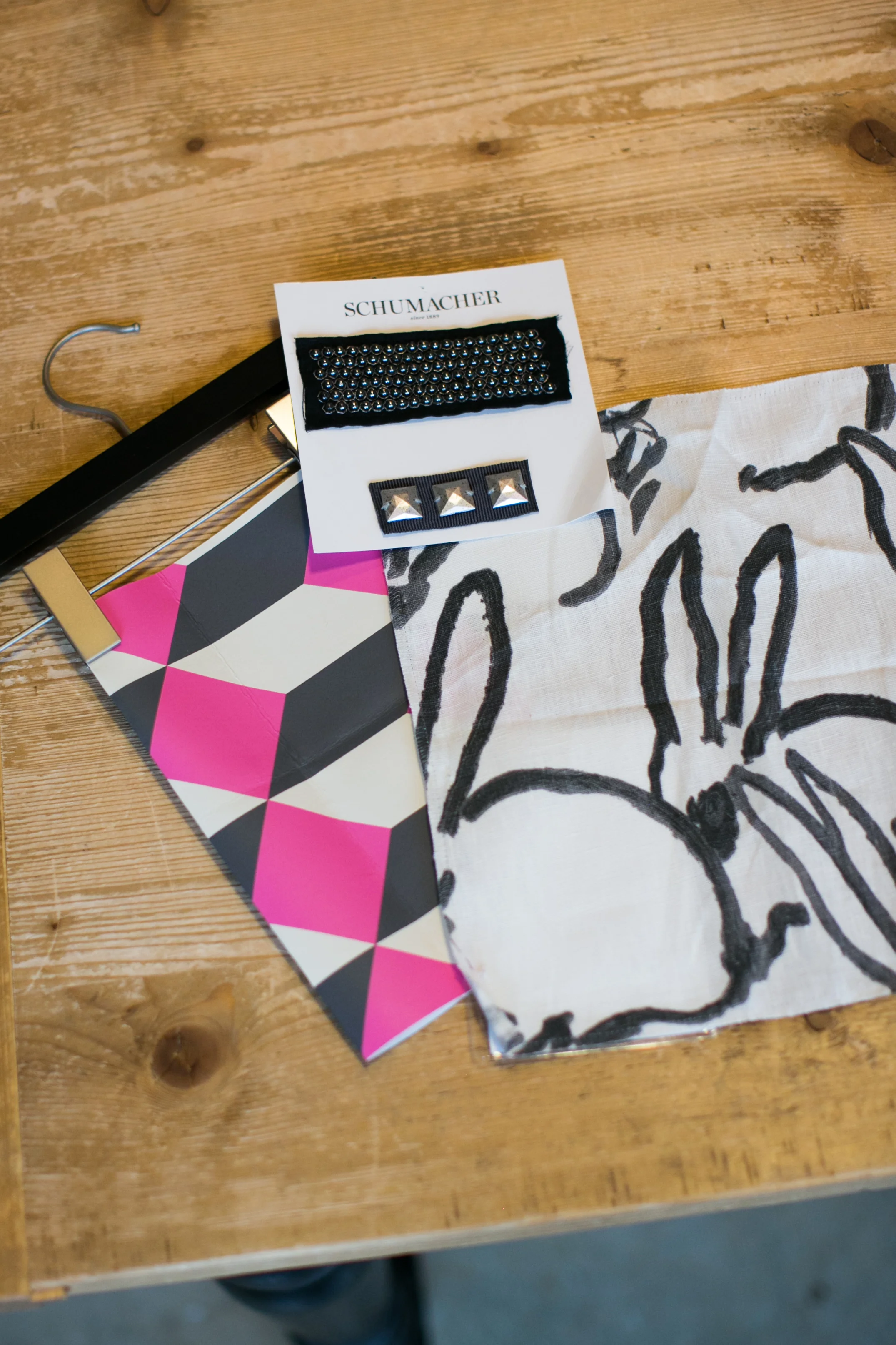 This was the easiest room for me to dream-up! Perhaps that's because I've always been a sucker for decorating with black and white and pops of color. This black and white bunny textile is the perfect amount of whimsy for a little girl's room. The abstract nature of the bunny illustration allows any little girl's mind to run wild. And while the rebel in me wanted to find something other than the cliche color "pink" for a girl's room, I couldn't help but fall in love with the grey/white/bright pink wall paper. The icing on the cake was finding two different trim pieces, varying in size and shape to put the final bedazzle on the room.